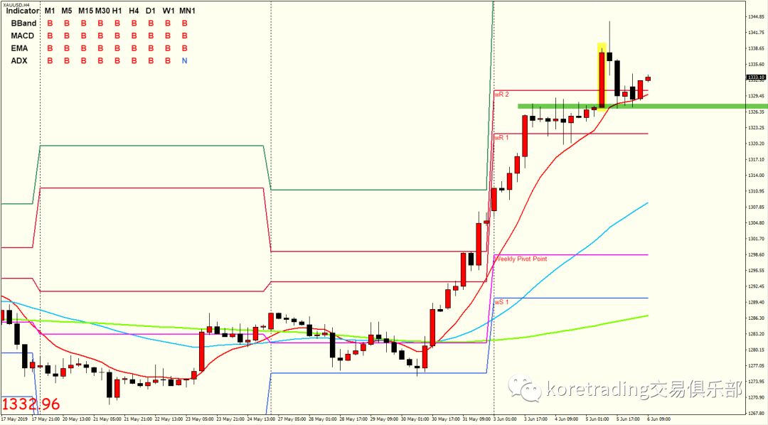 美国昨日公布5月私人企业新增职位仅增加2.7万,增幅远不及市场预期及前月的分别18万及27.1万,亦是自2010年3月以来最低。美国小非农数据远低于预期,加剧市场对中美贸易纷争对当地就业市场的影响,现市场正关注将周五公布的美国5月份就业报告,近期金价持续受到市场对美联储降息预期升温提振,加之国际贸易争端局势前景不明朗支撑黄金。黄金技术指标依旧全线偏多,10EMA大幅拉升,动能指标暗示黄金上行动力强劲,日周线图上可以看到汇价已经回到高位阻力区间,昨日金价再刷2.20日以来新高触及1340上方高点直逼年内高点1346水平。日图上突破并远离云层,日内回落有限并在1227/1228一带形成一定的支撑阻力互换。日内关注欧央行利率决议以及一系列美元数据。市场避险情绪重新吸引黄金买盘,料黄金短线急挫下行的可能性比较有限。交易上,黄金大概率仍将挑战前期高位,不过目前水平追多并不理想,建议投资人谨慎追多。如果高位遇阻走出日级以上反转形态,不如考虑高位的空单或者右侧破位下行后的空单入场更为稳妥。