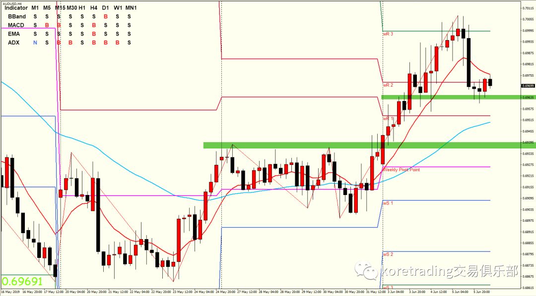 昨日公布的澳大利亚一季度GDP年率为1.8%,低于前值2.3%,和预期持平;一季度GDP季率为0.4%,低于预期0.5%。数据整体参差不齐,不过周二澳联储已经降息应对经济回落,市场反应有限。此为澳洲联储近三年来首次降息。之后澳洲联储主席洛威表示,有信心将失业率降至4.5%。市场目前对全球贸易摩擦升级的威胁感到非常担忧,贸易分歧显然是全球经济面临的最大问题,整体看此轮降息符合预期,对于进一步行动并无太多暗示。技术面上上,澳币涨势未能延续,四小时在上周五破位后一路上行,昨日突破200SMA及周枢轴第三阻力水平后走出回落,目前在200SMA附近暂时止跌。技术指标偏多,10EMA回落不过汇价仍有望重启升势,日内留意0.6980-0.70一带能否重新突破站稳。若汇价再度遇阻回落,或走出进一步回调或者横盘震荡。我们持有的多单底单仍可继续持有,如果仓位之前减持,那么可以关注重新补单机会,尤其汇价如果能再度突破0.70水平。澳美暂不适合入场空单,谨慎的投资人可以等待破位后拉回右侧入场。