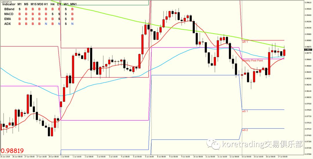 美元兑瑞郎四小时走出弱反弹,虽然整体格局偏空,不过技术指标目前转多,均线组短线有望进一步形成金叉上扬。汇价已经阳线突破周枢轴并窄幅整理企稳该水平,日内有望进一步上探0.99水平。早盘交易计划考虑短线的多单布局目标在0.99,这是日内多单考虑减平离场以及需要进一步观测阻力的水平。若该位置阻挡反弹有效,则汇价将延续日线级别趋势线压制下的下跌,而若汇价能够有效突破,关注美瑞能否回到一目均衡云层中以及对整数1关卡的测试。美瑞仍由美元主导,美元指数重返97,强势可见,此后重点留意月低的美联储利率决议,大概率美元将短期维持强势。