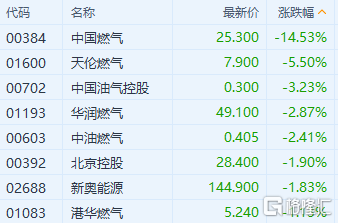 盘面上,燃气股大跌居前,黄金、钢铁、铜等有色板块全天弱势,中资券商股、内房股、药品股呈普跌之势;大型科技股涨跌不一,腾讯、阿里巴巴小幅上涨,快手、京东跌超1%;另一方面,体育用品股再度爆发,特步飙涨逾20%,李宁特步安踏均刷新历史新高价;香港零售股、汽车股、港口航运股、燃料电池股逆势走强。燃气板块领跌,中国燃气跌14.53%,天伦燃气跌5.5%,中国油气控股跌3.23%,华润燃气、中油燃气跌逾2%。