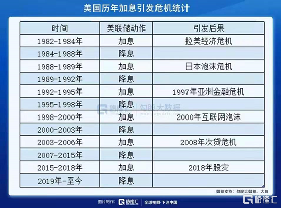 但纵观过去,美国一旦开启加息周期,每次都会爆发危机!对于我们的启示是,投资策略从进攻变为防御,祈求能够安然度过这个史无前例的泡沫爆破的洗礼。