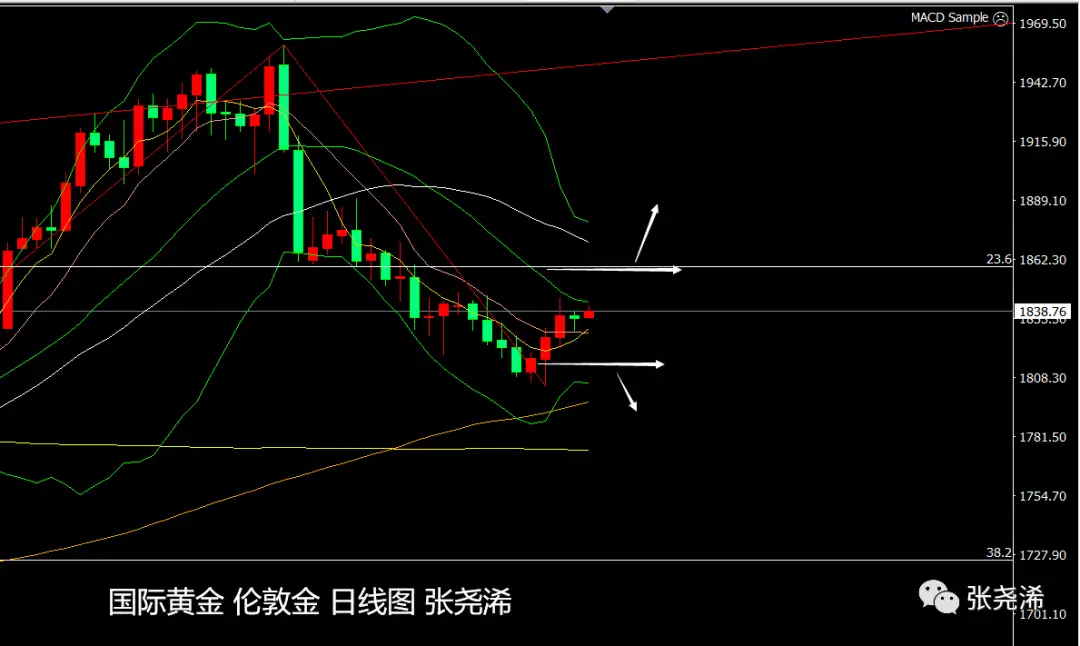 上交易日周四(3月2日):国际黄金/伦敦金震荡收跌,多头动力有所减弱,也如期初步陷入短期的震荡盘整局面,如下周不能持稳于日图中轨上方,则后市仍有再度下跌,触及100日或200日均线支撑位置,周线则继续关注30周或200周均线位置。但如站稳中轨上方,则有望延续走强,重回千九关口上方。