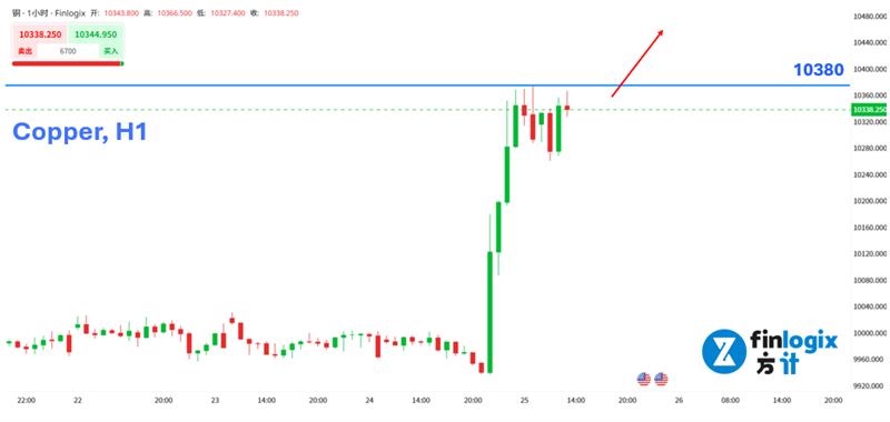 技术面:铜价昨天的暴涨属于供应中断所引发的「事件性急涨」,短期仍具支撑力。新能源、电动车及电网升级等中长期需求方向明确,若自由港矿区在数周内无法实现部分复产,市场对供应紧张的预期将迅速升温,因此日内仍维持对铜价突破的看涨观点。小时线突破10380考虑偏多。